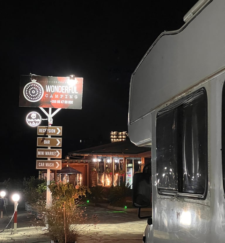 If you want to find peace and quiet near Durrës, we recommend this campsite. It's not by the sea, but if you need to spend the night to visit Durrës, Tirana or Rodonit the next day, this is a great choice. What attracted us there? Very nice and helpful hosts in every respect and a beautiful, romantic atmosphere in the evening. Hundreds of bright lights were on around the two water reservoirs (only for us, because we were alone at the campsite).For the journey we received a handful of delicious, organic grapes from our home garden.
